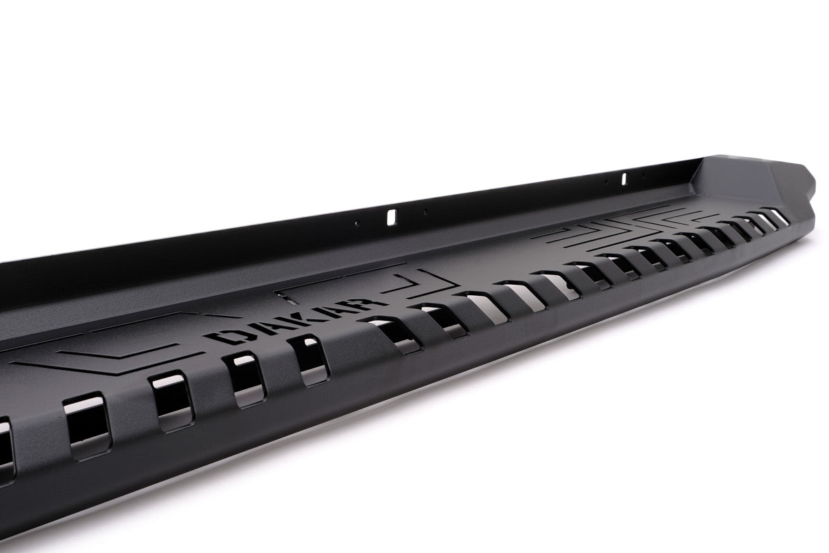 - The body of Dakar side steps is made of 3 mm Steel material. Electrostatic paint is used on the top coating.