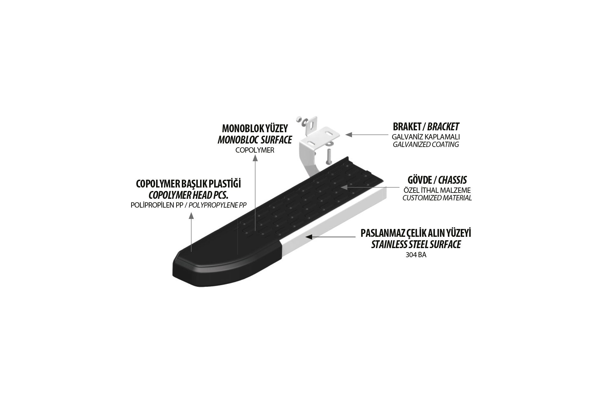- While preparing the body, the steps create high strength thanks to the shape given to the galvalume material. In addition to the resistance of the galvalume material itself, with the extra protection resistance given by the structure, it protects your vehicle against impacts at the maximum level, as well as acting as a step.