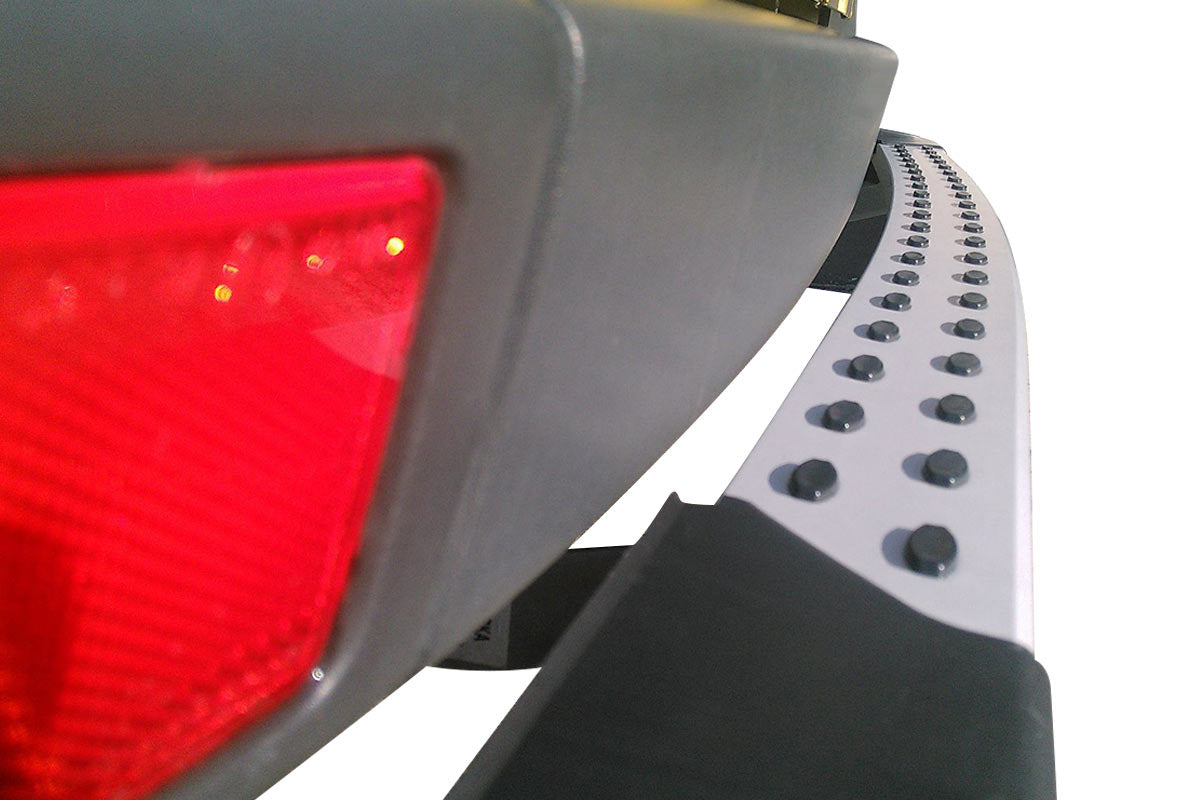 - Пока кузов готовится, задние защитные ограждения создают высокую прочность благодаря форме, приданной алюминиевому материалу. Помимо прочности самого алюминиевого материала, он обеспечивает максимальную защиту от ударов за счет дополнительной защитной прочности, обеспечиваемой конструкцией.