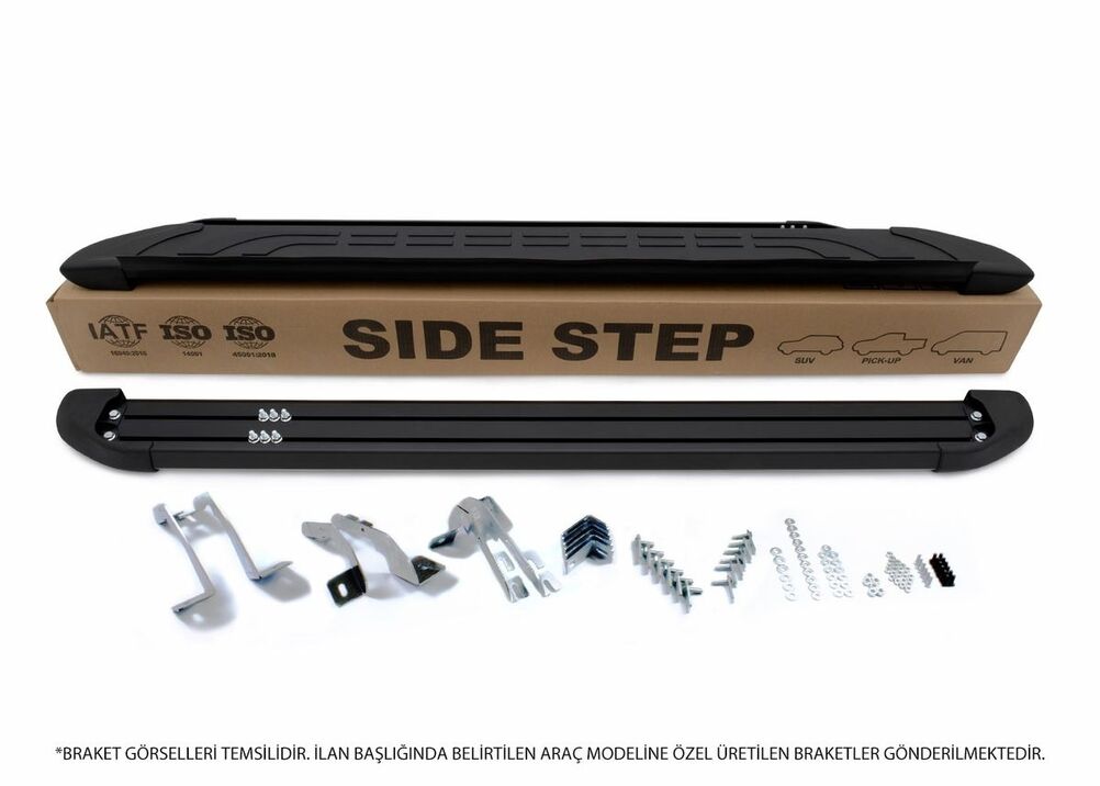 2 Adet Profil (basamak) araca özel bağlantı braketleri, montaj elemanları, görsel montaj talimatı.